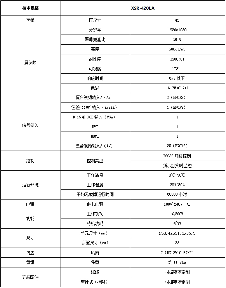 新視銳42寸窄邊22mm拼縫液晶拼接單元產品參數: