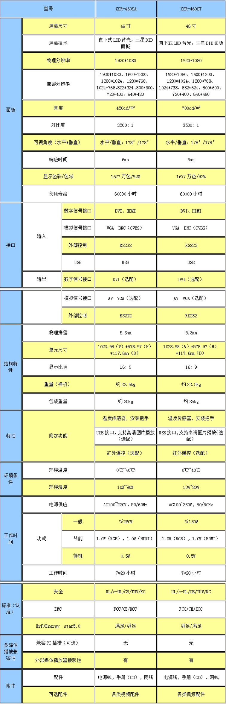 新視銳46寸超窄邊5.3mm拼縫液晶拼接單元產品參數(shù):