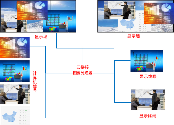 新視銳XSR-WP9000系列云拼接圖像處理器典型運用示意圖: