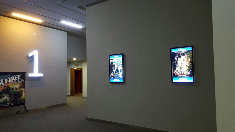 遂寧某電影院,為打造不一樣的看電影氛圍,宣傳新電影及電影上映時間等,新視銳根據(jù)客戶需求,采用一批豎式42寸廣告機,安裝在去往各個電影院內(nèi)部走廊倆邊的墻面上的方案。通過廣告機播放著當日要播放的電影簡介以及大力宣傳即將上映的各種大片,為廣大喜愛電影的青年男女們可以提前做好選擇。