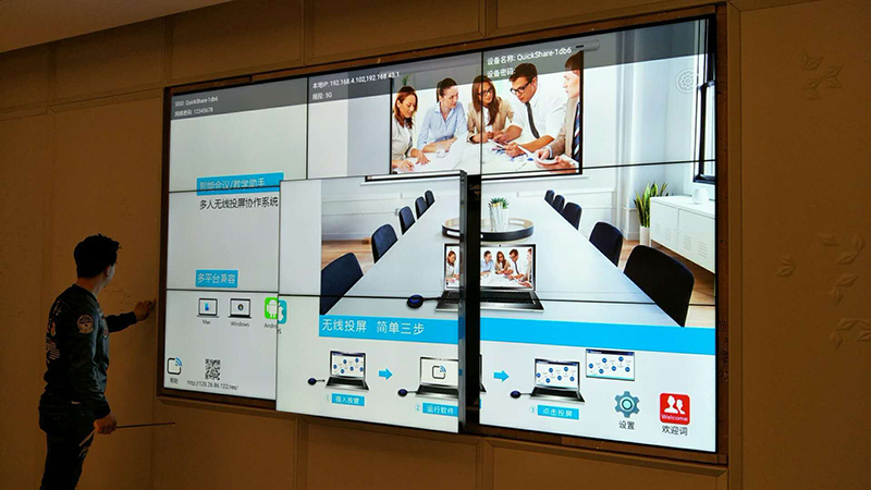 此工程所用材料由深圳市新視銳有限公司(m.fuhuaqi.com.cn)獨家承制,其中包括: 液壓式前維護壁掛架,1進16出高清HDMI分配器,一線品牌HDMI工程信號線材,控制線材,電源線,三星46寸超窄邊3.5mm拼縫液晶拼接單元,無線投屏系統組件等。