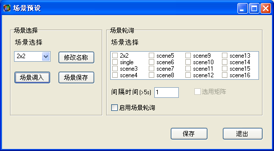 支持16種場(chǎng)景模式保存,可以更改模式名稱。選擇要保存的模式,設(shè)置完成后點(diǎn)擊“保存模式”。“調(diào)用模式”可以調(diào)用用戶保存過(guò)的模式、跟據(jù)有需求用戶的還可以啟用場(chǎng)景輪詢模式